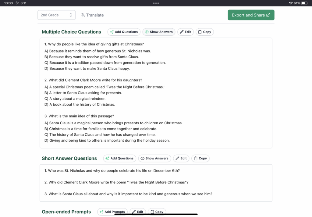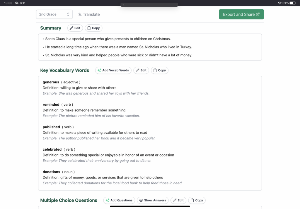 Jak widzicie, znajdziecie tu wszystko czego Wam potrzeba: słowniczek, odpowiedzi, możliwość edycji zadań. Wystarczy wysłać uczniom lub zapisać i wydrukować.